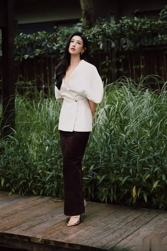 朱珠的 “白开水” 穿搭,胜在对色彩与版型的精准拿捏。全身以米白色为主调,这种低饱和度的暖调白,比纯白多了几分温柔,比奶白多了一丝通透,自带 “视觉降温” 效果,适配春日的清新氛围,更能衬得肤色透亮细腻。上衣选用法式一字肩设计,松弛的泡泡袖采用橡筋收口,避开了常规泡泡袖的 “壮硕感”,让手臂线条更显纤细,同时适度露肩,恰到好处地释放女性魅力,却不显得刻意张扬。