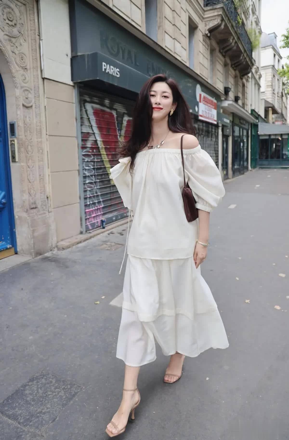 当时尚圈还在沉迷高饱和色彩与繁复设计时,朱珠一组巴黎街拍悄然引爆潮流,米白色一字肩上衣搭配同色系半身裙,脚踩细带凉鞋,一身 “白开水” 穿搭清透脱俗,将松弛感与高级感完美融合,这组造型没有华丽配饰堆砌,却凭简约版型与灵动剪裁,让 “不费力的美” 成为新的时尚标杆,也为普通女性解锁了春日穿搭的无限可能。